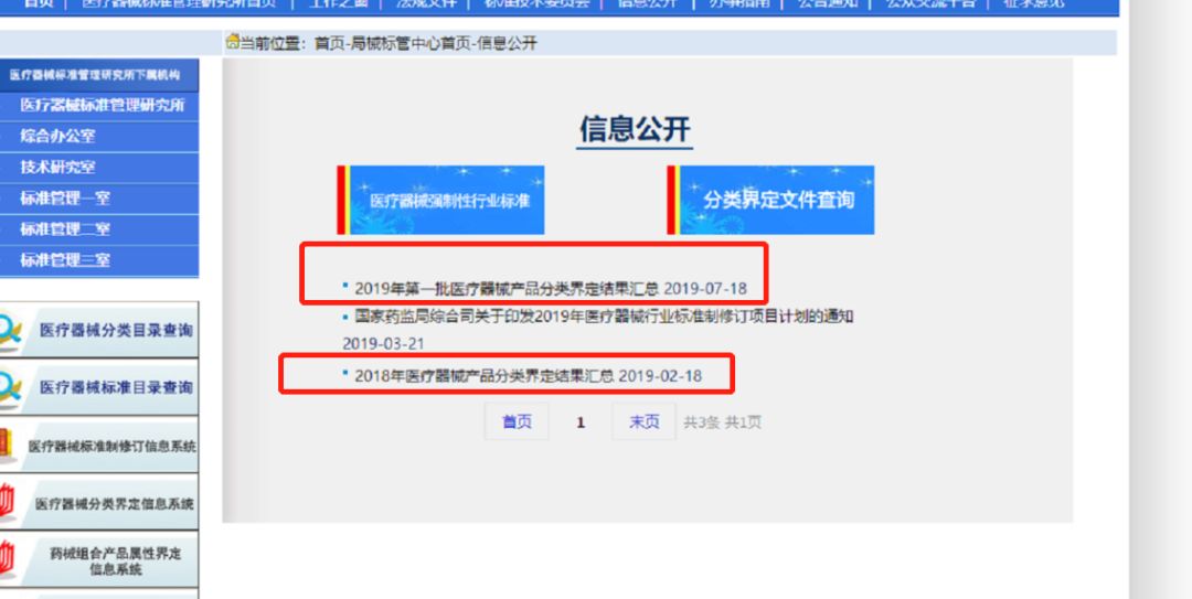在“醫(yī)療器械標準管理研究所”網(wǎng)站的“信息公開”中,可以查詢新分類目錄生效后的產(chǎn)品分類界定結(jié)果匯總,作為參考。