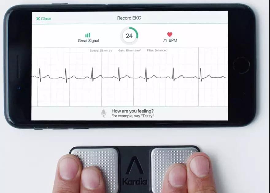高鉀血癥如果得不到不及時治療會導(dǎo)致威脅生命的心律問題。目前進行血鉀水平檢測需要去醫(yī)療機構(gòu)驗血。而AliverCor的KardiaK軟件,利用人工智能通過對心電圖(EKG)數(shù)據(jù)進行運算來檢測血鉀水平升高,無需患者血液就可以檢測出血鉀水平是否升高。
