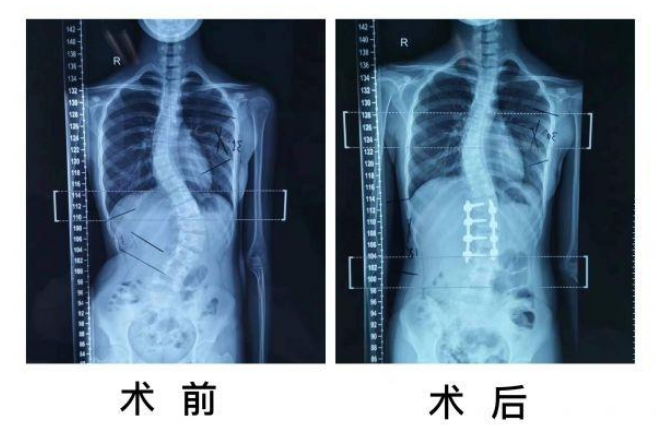 影像檢查片上清晰可見(jiàn),亭亭的脊柱被“拉直”了,背部左右也變得對(duì)稱了。