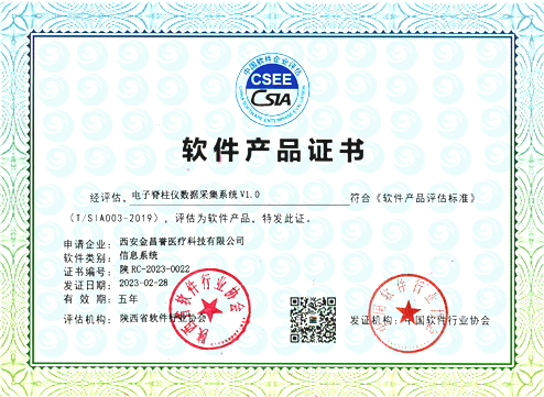 西安金昌譽(yù)榮獲“電子脊柱儀數(shù)據(jù)采集系統(tǒng)V1.0”軟件證書